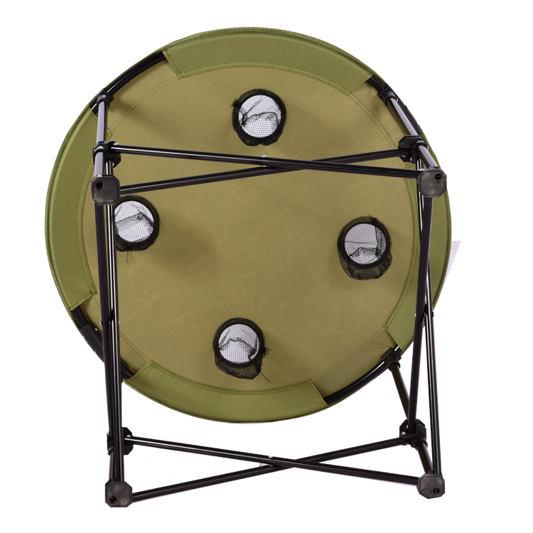 Enjoy outdoor meals and beverages with this round folding table with a convenient built-in cup holder. Its foldable design allows easy setup and storage, while the sturdy surface provides reliable support for food, drinks, and accessories. The integrated cup holder keeps drinks secure, preventing spills and adding extra convenience. Lightweight and portable, it’s good for camping trips, picnics, or backyard gatherings. The round shape promotes social interaction and adds a stylish touch to any outdoor setting. Durable and functional, it combines comfort, practicality, and portability in one compact design.